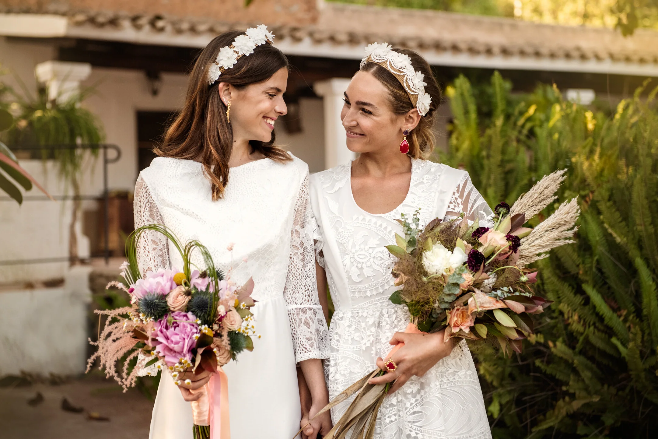 En qué paleta de colores os basásteis? El rosa palo y el beige. Colores pastel. Queríamos transmitir tranquilidad, naturalidad y belleza en este reportaje, y expresar el romanticismo del estilo Boho Chic, una decoración minimalista. Para ello, usamos flores secas, los floristas usaron plantas como pampas, hojas de eucalipto, ramas de palmera seca, rosas …entre otras muchas más.