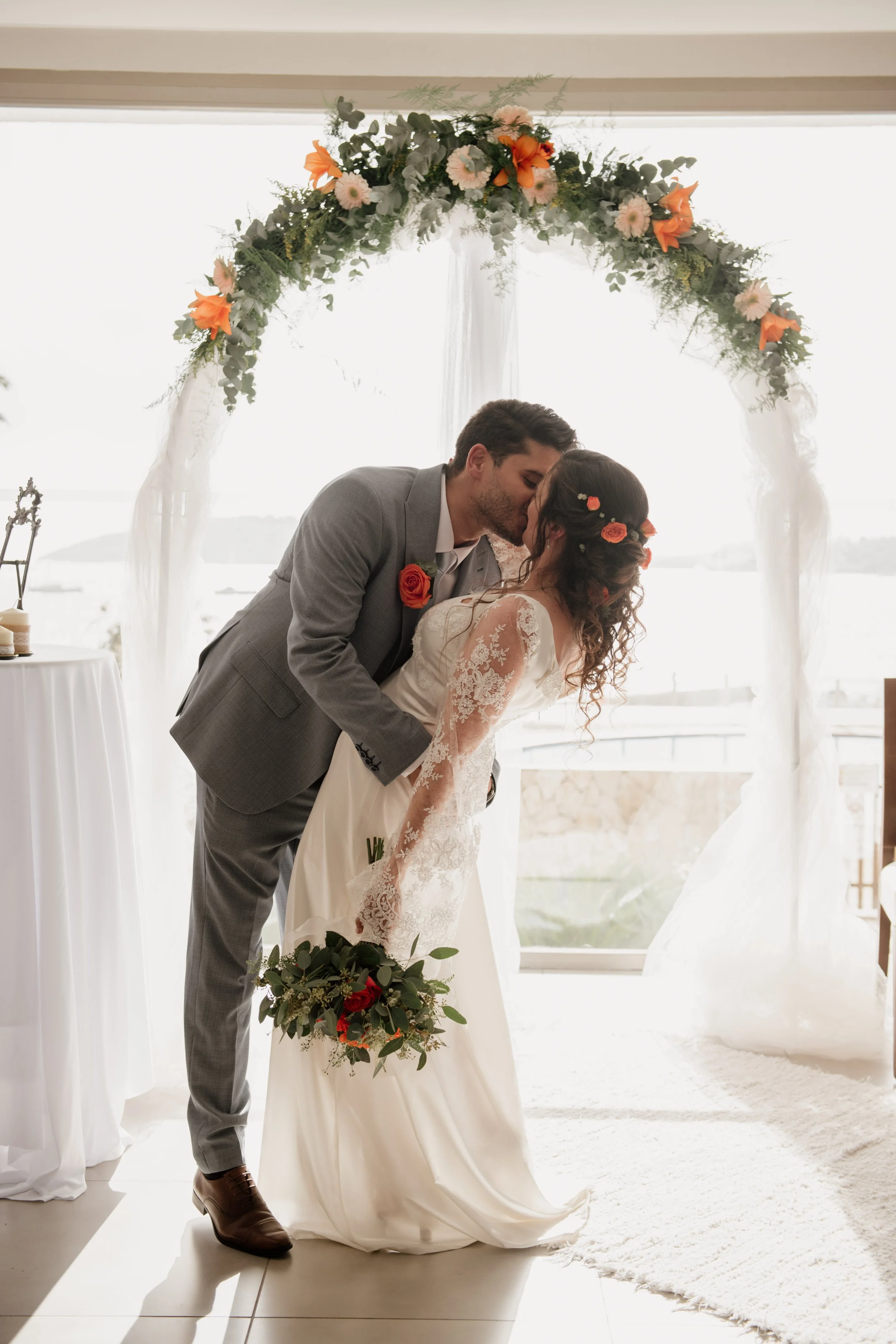 Muchas de mis parejas agradecen tener este momento antes de llegar a la ceremonia. Es el momento en el que os veis por primera vez en el día, o puede que queráis no veros hasta llegar al pasillo y decir unos votos espalda con espalda, o detrás de una columna, o una puerta…